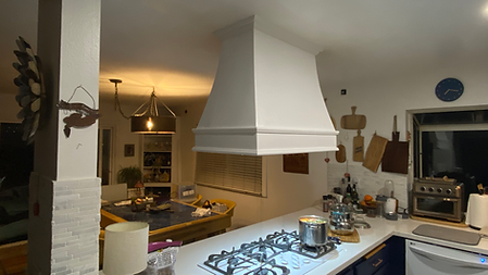 Old pool table conversion into dining table with epoxy top & older wine cooler conversion into plexiglas front with LED lighting piece of furniture. Tuscany style custom made kitchen hood custom built.